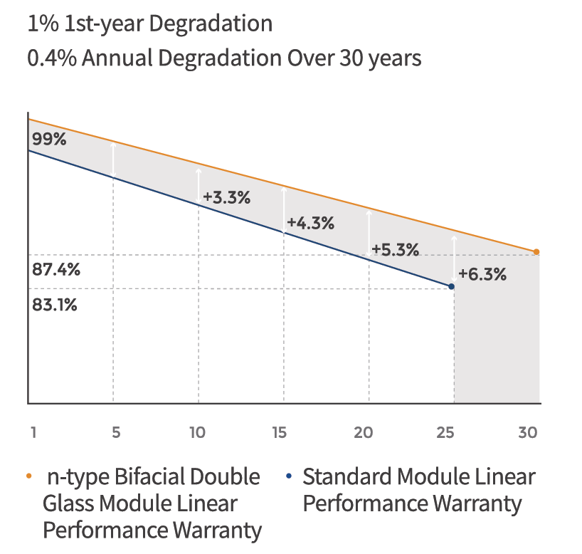 به طور کلی، صنعت خورشیدی میانگین عمر مفید پنلها را بین ۲۵ تا ۳۰ سال در نظر میگیرد. این بدان معنا نیست که پنل پس از این مدت از کار میافتد، بلکه کارایی آن به تدریج کاهش مییابد.دهه اول پنلها در اوج عملکرد خود هستند، دهه دوم و سوم کاهش تدریجی راندمان رخ میدهد و پس از ۳۰ سال بسیاری از پنلها همچنان قادر به تولید برق هستند، اما با بازدهی کمتر (اغلب بین ۸۰-۷۰ درصد توان اولیه). برخی از قدیمیترین پنلهای نصب شده در جهان پس از ۴۰ سال هنوز فعال هستند. بطور میانگین، پنلها سالانه حدود ۰.۳ تا ۰.۸ درصد افت راندمان دارند. بنابراین پس از ۲۵ سال، عملکرد آنها حدود ۸۰ تا ۸۵ درصد ظرفیت اولیه خواهد بود و همچنان با بازدهی قابل قبولی انرژی انوار خورشید را به برق تبدیل میکند.